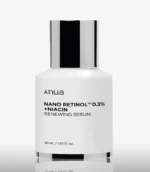 Su principal ingrediente es el Retinol al 0.3%. Este es un derivado de la vitamina A y es especialmente útil para tratar los signos de la edad. El retinol acelera el proceso de renovación celular, ayudando a que las células muertas de la superficie de la piel se exfolien más rápidamente. Esto resulta en una piel más suave, con una textura mejorada y un tono más uniforme, ya que también ayuda a disminuir la producción de melanina en la piel, haciendo que algunas manchas puedan disminuir su pigmentación. Además, puede mejorar la apariencia de líneas de expresión al promover la producción de colágeno, que es esencial para mantener la firmeza y elasticidad de la piel.